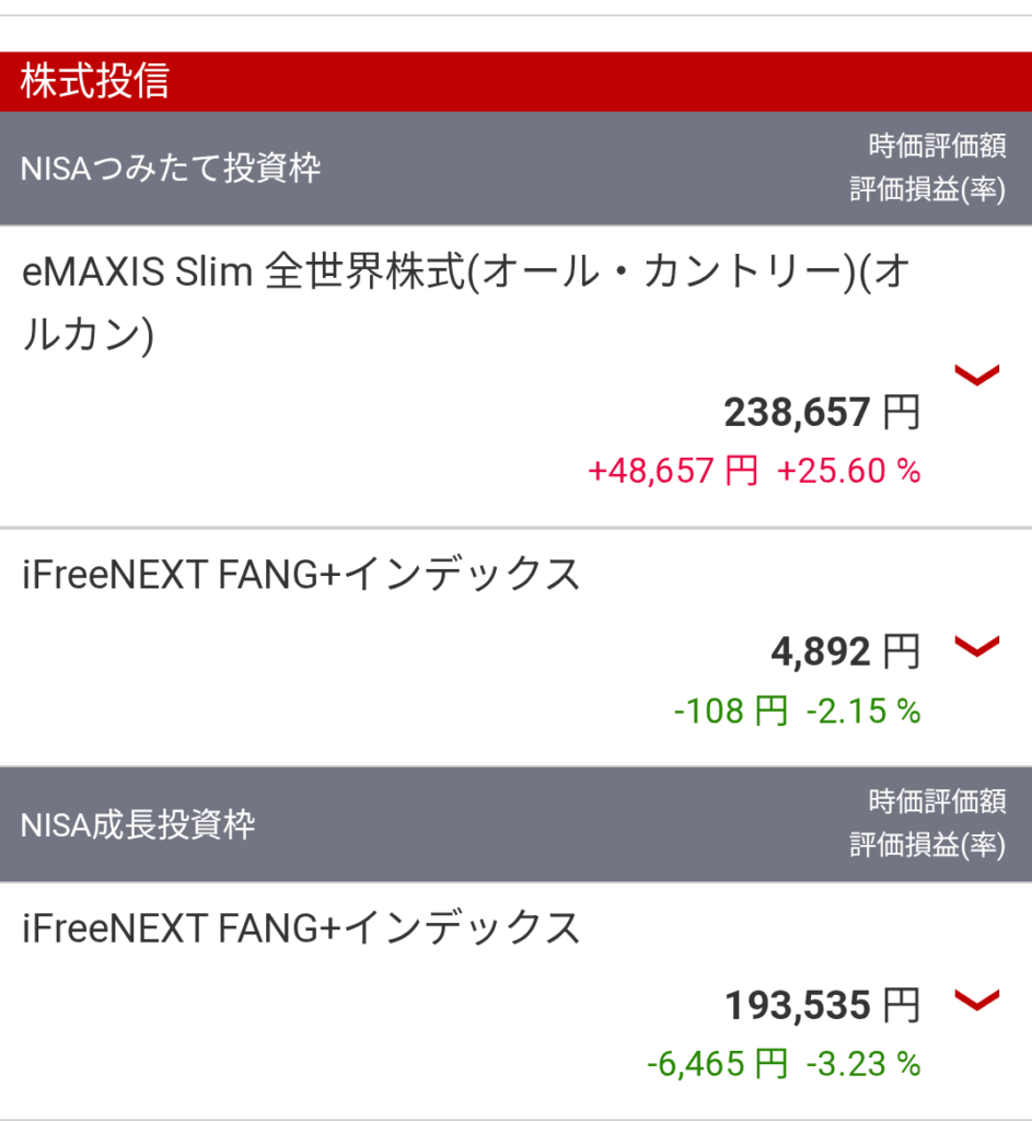 FANG+(成長投資枠):193,535円(前週比 −3,143円)